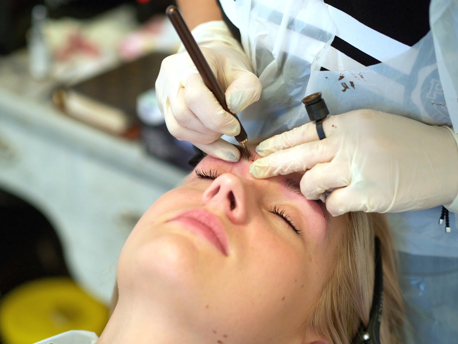 Chelsey began the drawing on stage she measured out where my brow should start, arch should be and tail should finish. She plotted out the perfect shape that would frame my face and suit me, this takes a while as she is a brow perfectionist which is what you want when you’re getting them tattooed so she takes great care, time and makes sure before even thinking about getting to the tattooing stage that you are 100% happy with the shape etc.