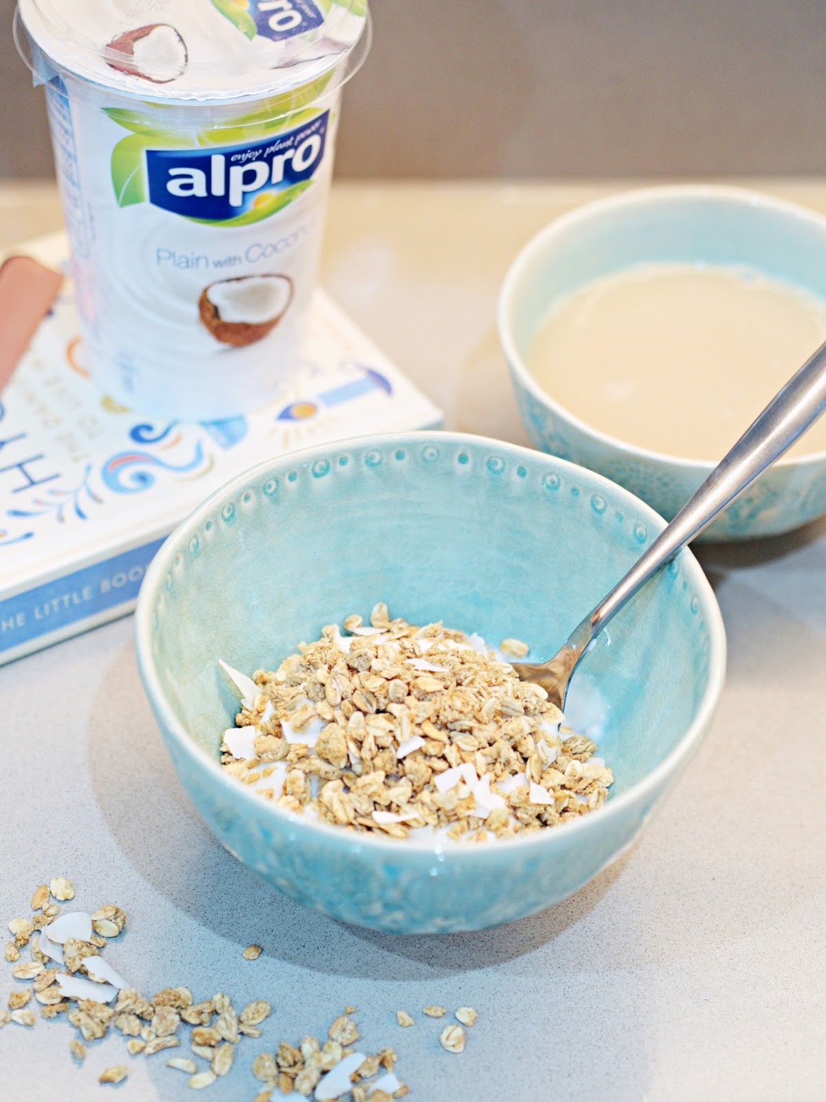 I also sometimes take away the honey and add banana but it is up to you and I just do it based on if we have bananas in the house at the time. I love this right now as it is quite tropical which is getting me in the mood for summer. It also allows me to keep portion control by measuring out the granola to the boxes recommended serving. Adding a dash of honey and mixing into the yogurt before popping in the granola too takes the edge off though if you have the almond Alpro or the Coconut Alpro yogurt you don’t need the dash of honey in my opinion.